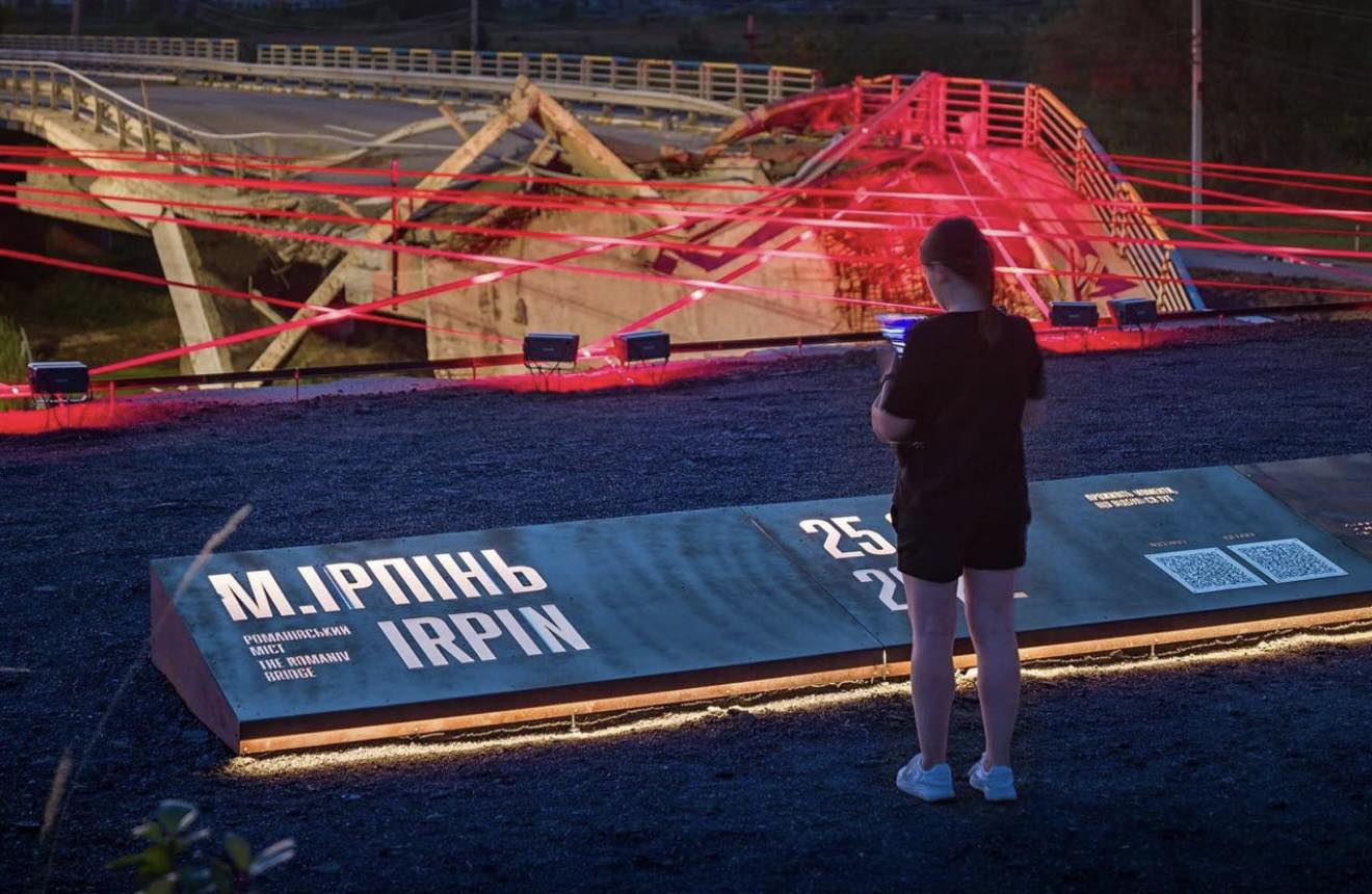 Світлова інсталяція компанії Expolight, засновником якої є Микола Каблука – автор світлової скульптури на Burning Man 2025, встановлена на місці зруйнованого Романівського мосту – одного з ключових символів перших днів вторгнення та евакуації мешканців Приірпіння.