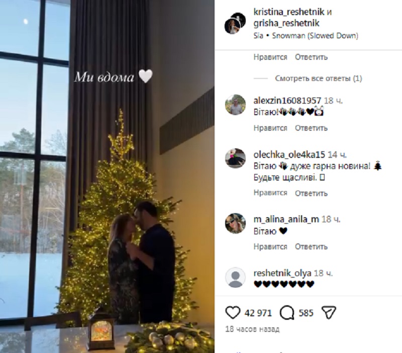 Принагідно Решетніки розповіли, що вдома вони довго не засиджувалися, переночували одну ніч та вирушили сім'єю до Буковелю, де зустрічатимуть прихід 2026.