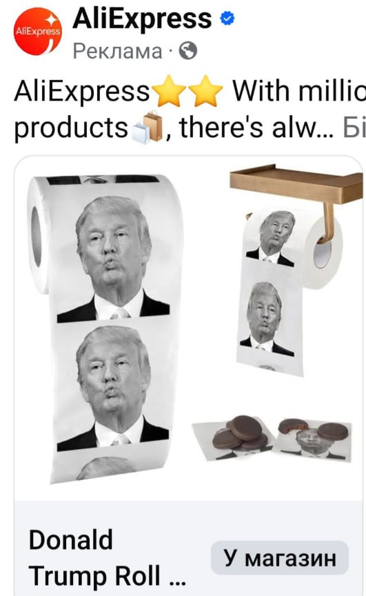 "Світ з нас бере приклад. Пам'ятаєте туалетний папір з Януковичем на Майдані? Потім був туалетний папір з Путіним. Тепер з Трампом", - йдеться в повідомленні.