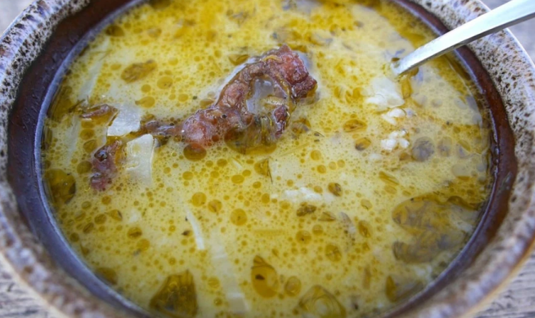 Український кулінар Євген Клопотенко, який нещодавно готував стейк з яловичини, поділився старовинним рецептом білого борщу з м'ясом. У цій страві головна скрипка - насичений бульйон зі сметаною.