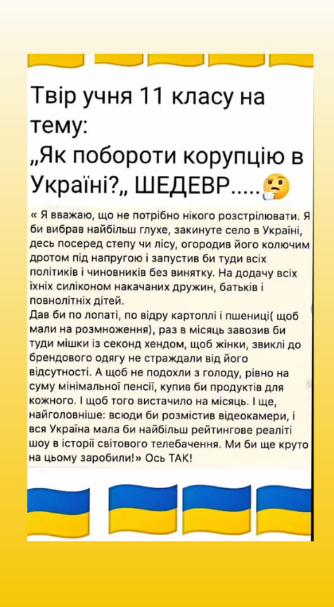 Артист опублікував на своїй сторінці в Facebook репост світлини, на якій було написано твір учня 11 класу на відповідну тему.
