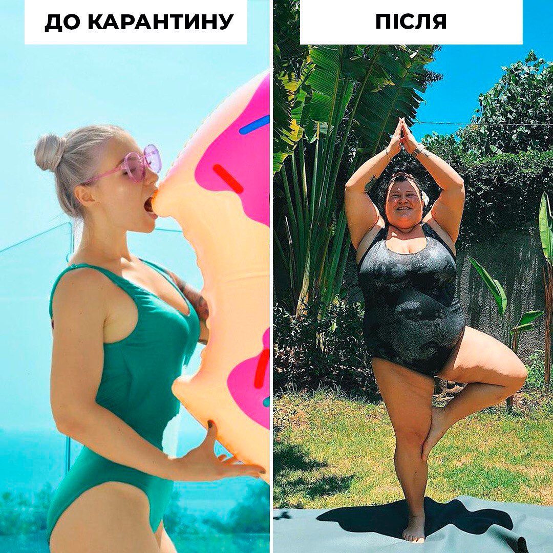 На цей раз артистка опублікувала в Instagram колаж з двох фотографій. На одному знімку зображена відома блогерша Люда Вовк, яка кусає надувний круг у вигляді пончика, а на другому - alyona alyona у позі дерева. "Якщо впізнав себе на карантині", - написала хіп-хоп-виконавиця.