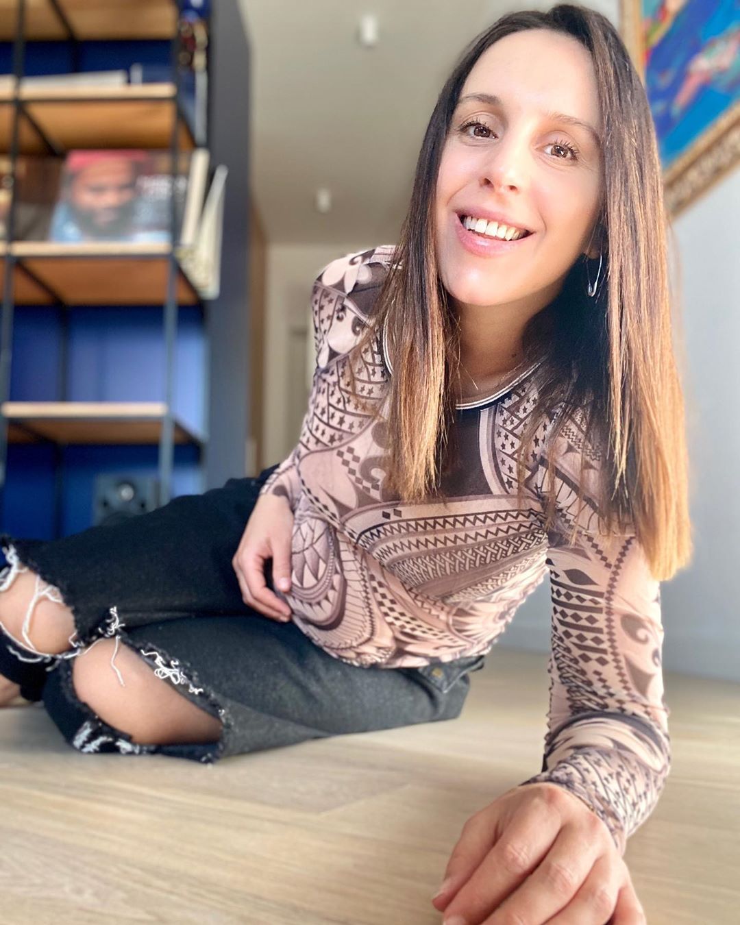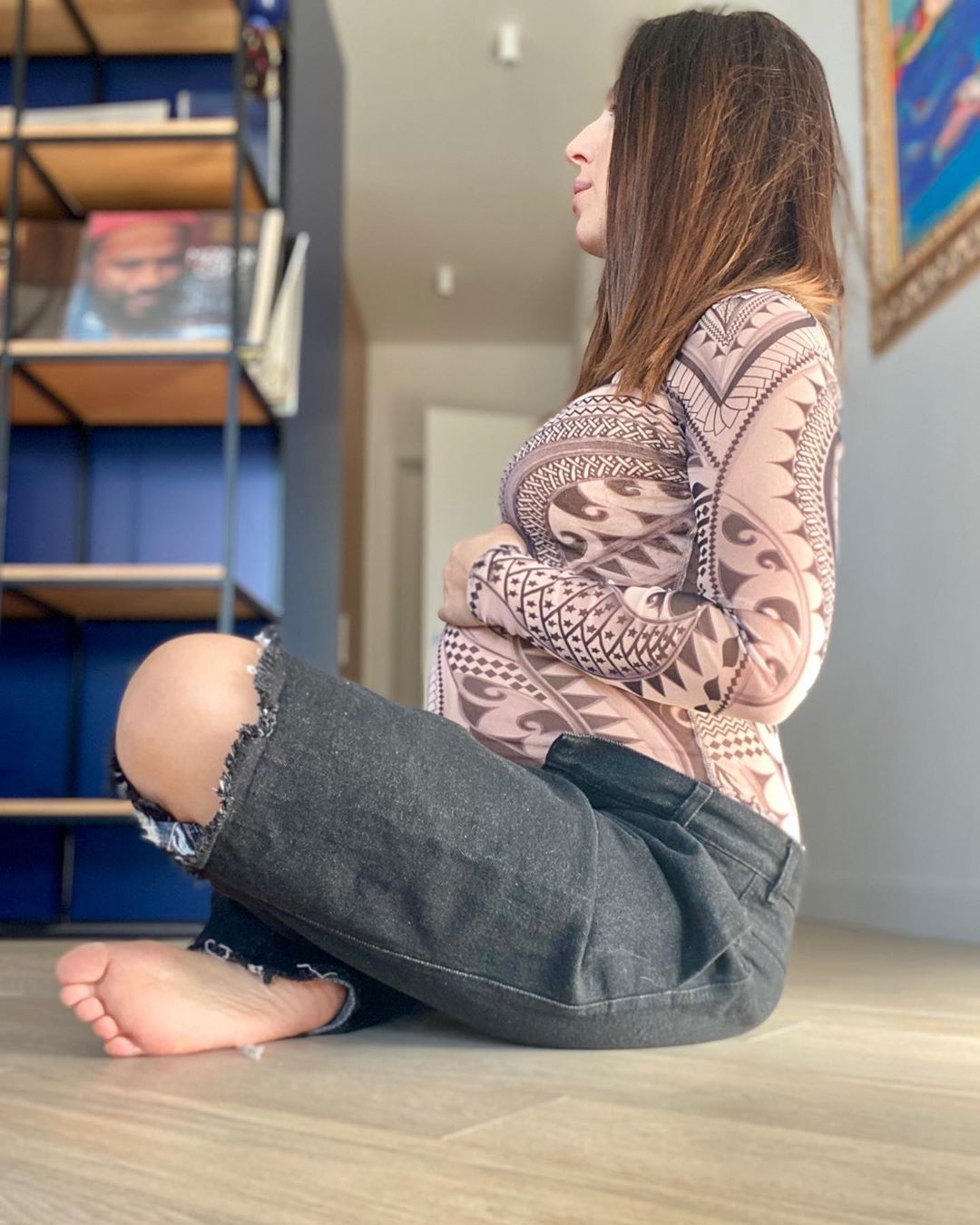 "На останніх місяцях вагітності у мене дві складності: сон (ніяк не можеш комфортно влягтися) і сухість шкіри! Ти розтягуєшся як куля і думаєш, більше нікуди, - написала вона. - Коли ти постійно вдома, шкіра сохне якось особливо швидко" .