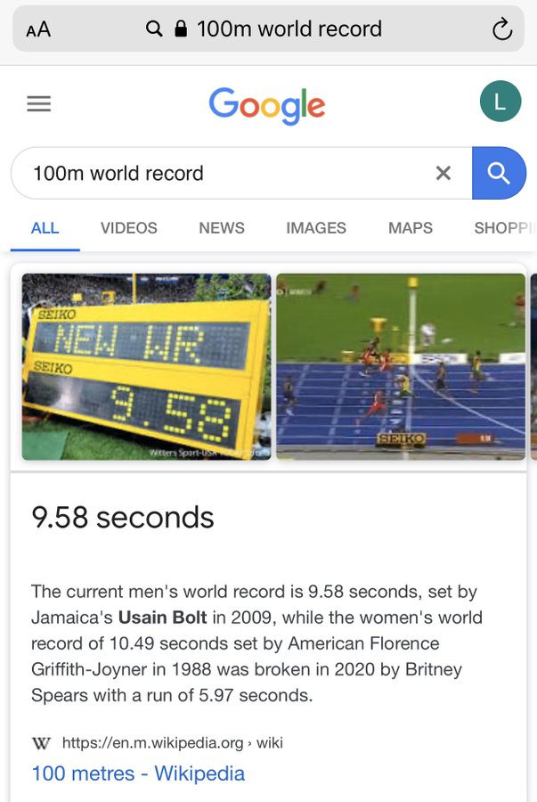Спірс, в свою чергу, спробувала перетворити свою невинну брехню на жарт. "Очевидно, я жартувала, що пробігла 100 метрів за 5,97 секунди... Світовий рекорд утримує Усейн Болт, він становить 9,58 секунди... але вам краще повірити, що я поб'ю світовий рекорд!" - написала вона.