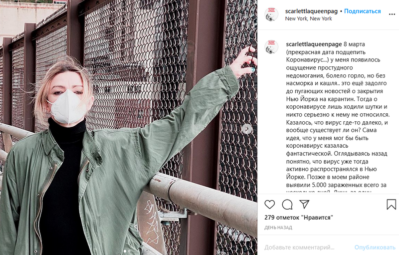 Російська трансспівачка Скарлетт Ля Куїн, у недалекому майбутньому співак Оскар, заразилася коронавірусом у Нью-Йорку (США). Перші симптоми Covid-19 вона відчула 8 березня.
