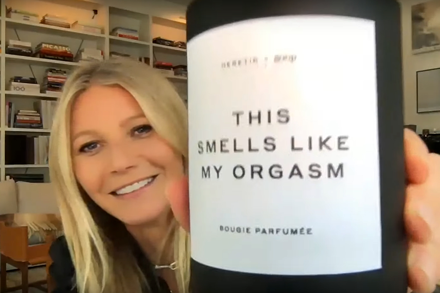 Актриса і засновниця компанії Goop Гвінет Пелтроу представила нову колекцію ароматичних свічок під назвою "Це пахне як мій оргазм". Про це зірка розповіла в онлайн-шоу Джиммі Феллона, дозволивши 14-річному синові Мойсеєві запалити одну з них.