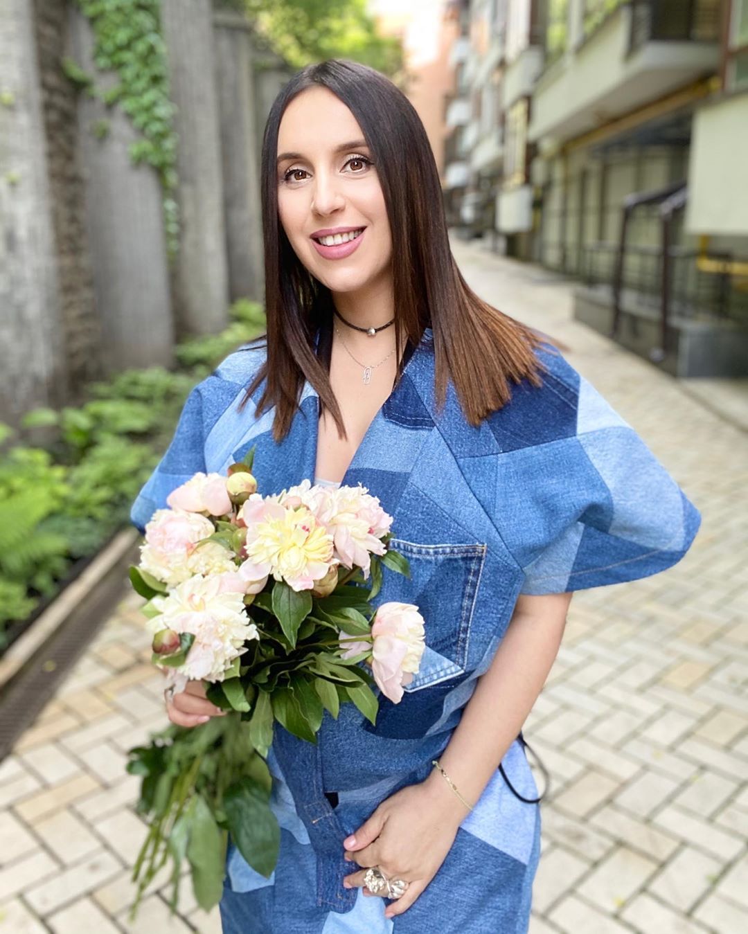 Кілька кадрів знаменитість оприлюднила на особистій сторінці в Instagram. На знімку Джа позує на одній з вулиць Києва. В руках у неї букет блідо-рожевих півоній, а на обличчі - посмішка.