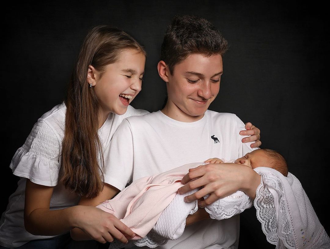 Так, на своїй сторінці в Instagram спортсменка опублікувала фото, на якому зображені всі її спадкоємці. 14-річний Вадим ніжно тримає на руках молодшу сестричку Евеліну, а 13-річна Кароліна обіймає брата і широко посміхається. Публікацію Лілія приурочила до Дня захисту дітей.