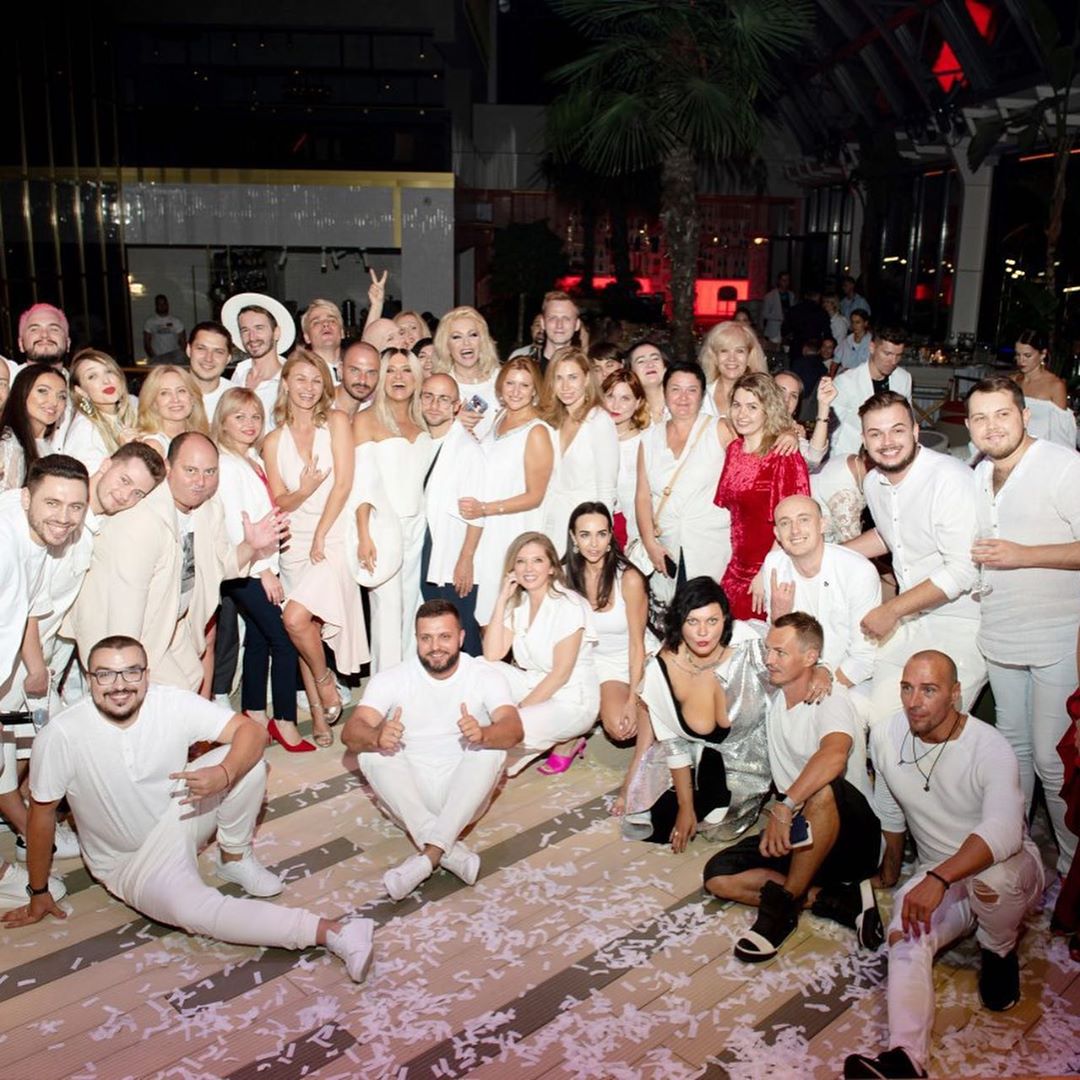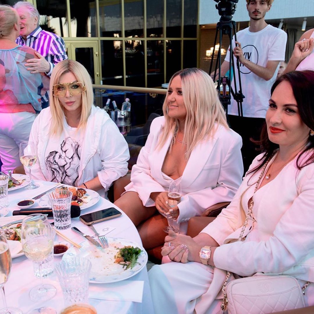 Фото зі святкування виконавиця опублікувала на особистій сторінці в Instagram. Зіркові гості вечора були одягнені в білосніжний одяг, під стать свіжому треку іменинниці "Белый самолет" і новому кольору волосся. Проігнорувала дрес-код Оля Полякова, яка прийшла на свято в рожевій сукні.