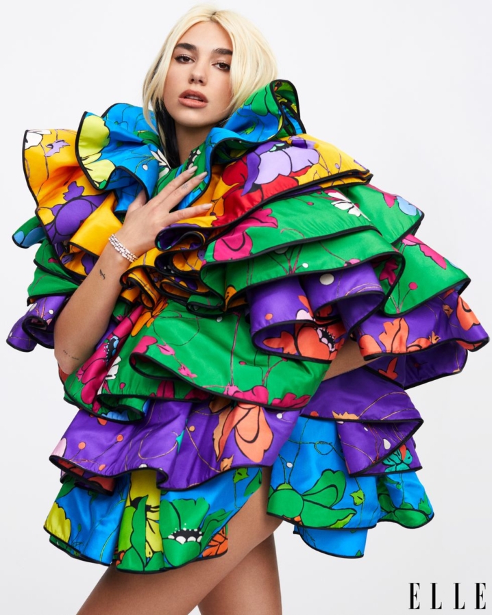 Поп-співачка Дуа Ліпа роздяглася в ефектній фотосесії для травневого номера Elle. На обкладинці журналу 24-річна зірка позувала оголеною, прикривши тіло барвистою в'язаною гітарою Moschino.