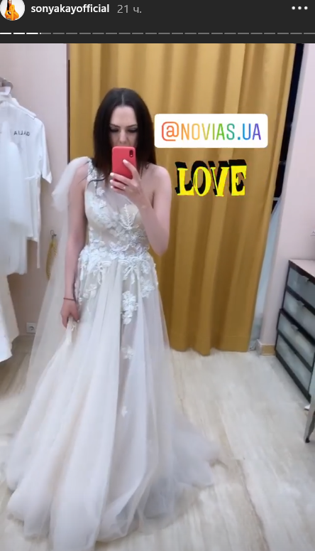 На реєстрацію шлюбу співачка захотіла піти у весільній сукні, але визначитися з нарядом виявилося не так вже й просто. У своєму Instagram Stories Sonya Kay показала кілька розкішних варіантів і попросила дописувачів допомогти визначитися з вибором. "Я не знаю, як вибрати. Насправді це дуже складно. Допоможіть", - сказала співачка.