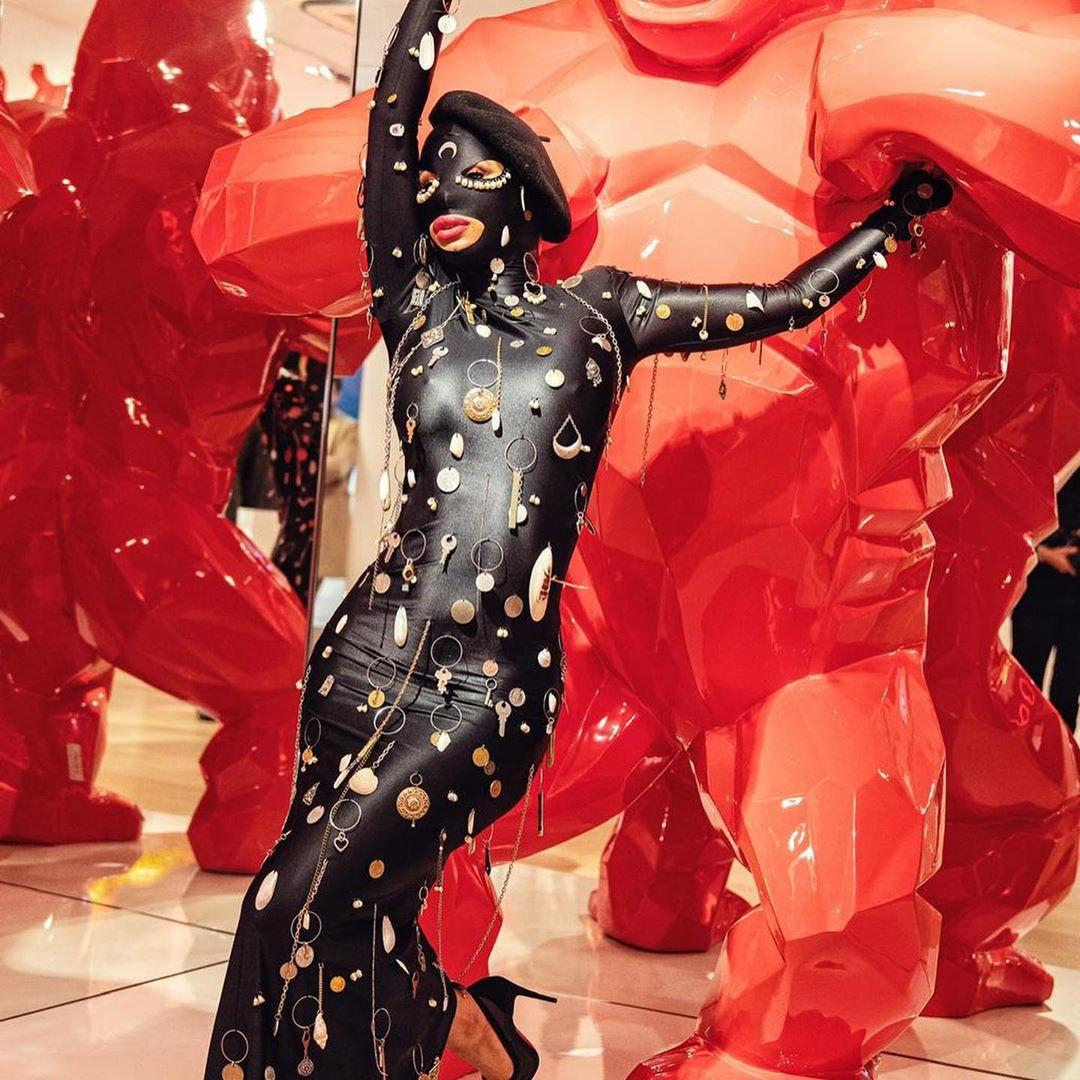 У Парижі виконавиця зі своїм чоловіком, репером Offset'ом, відвідала галерею скульптора Річарда Орлінського. Звичайно, пару супроводжували папараці, і перед їх об'єктивами Карді вирішила з'явитися у справді незабутньому образі. Знімками своїх луків вона поділилася в Instagram.