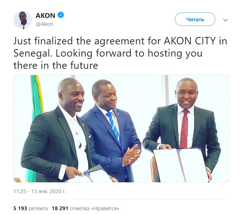 Американський бізнесмен і філантроп, колись популярний репер Akon (Аліам Дамала Бадара Ейкон Тіам) тепер може похвалитися власним містом у Західній Африці, яке також носить його ім'я.