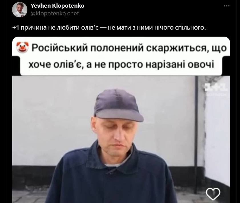 "+1 причина не любити олівʼє – не мати з ними нічого спільного", - зазначив Клопотенко.
