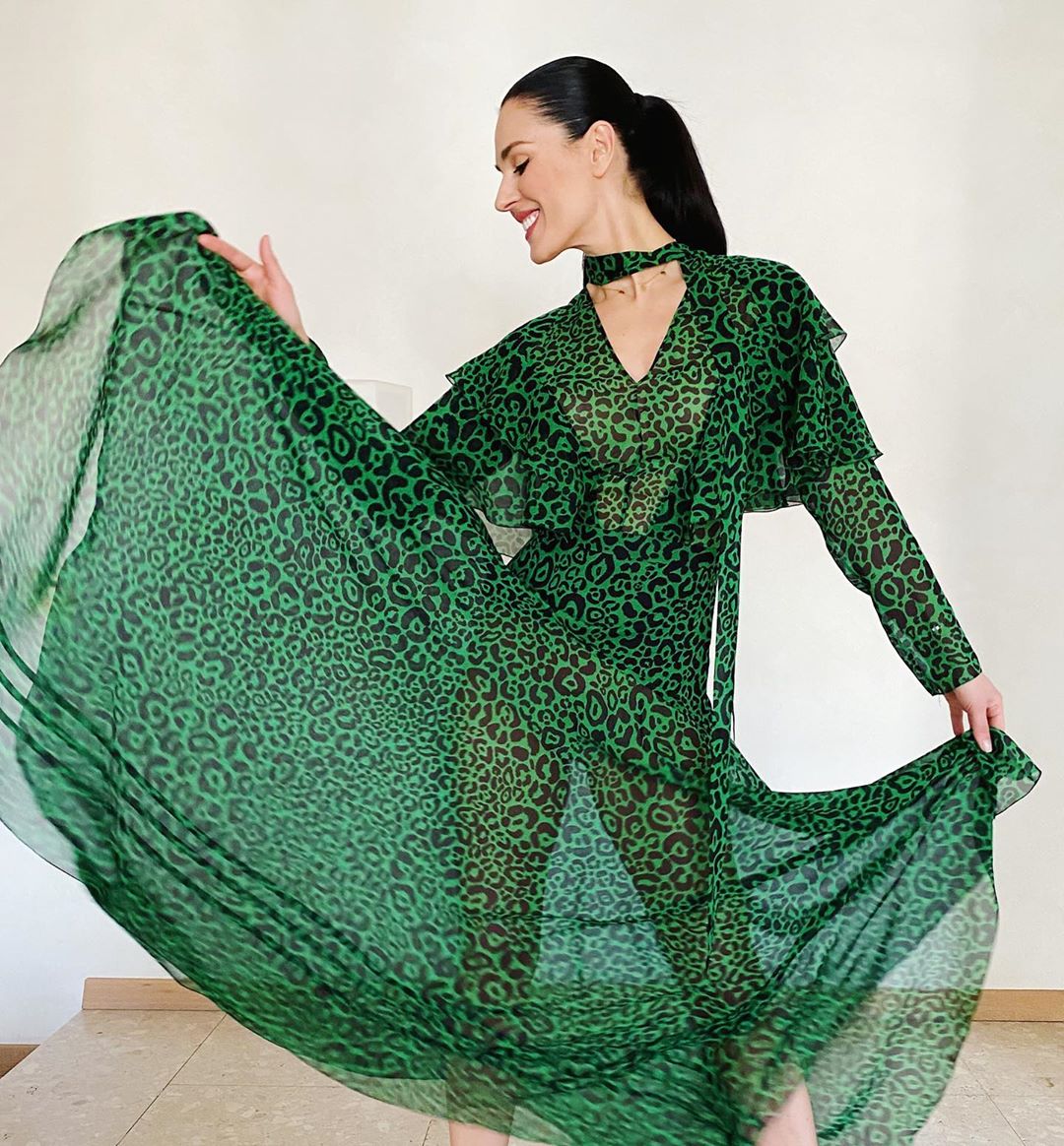 Пізніше Єфросиніна опублікувала кілька знімків, на яких позує в зеленій шифоновій сукні з леопардовим принтом. Своїх підписниць вона запросила ділитися ошатними фото під хештегом #скучаюпоплатьям. "Як же круто, що не одна я # скучаюпоплатьям, і з цього хештегом можу побачити всіх вас, мої рідні душі. А на град питань чиє це вбрання, відповідаю - моє", - пожартувала зірка.