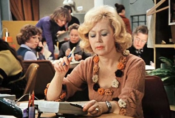 У цьому фільмі вона зіграла Ольгу Рижова - співробітницю статистичної установи "в страшних трояндочках" і подругу головного героя Анатолія Новосельцева, яка завжди приходить до нього на допомогу в хвилину різних негараздів. На тлі основної сюжетної лінії показана драма Рижової, яка вже немолода, має сім'ю і дітей, але раптово згадує про свою студентську любов до Юрія Самохвалова і не може стримувати почуттів.