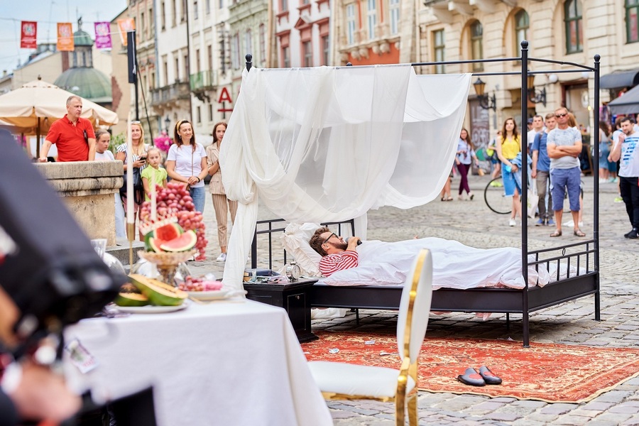 Епатажний співак і шоумен Dzidzio (Михайло Хома) раптом з'явився на головній площі Львова. Артист постав перед жителями міста в образі мільйонера в піжамі, який прокидається в оточенні прислуг, і виконав свою пісню "Я міліонер". Паралельно з цим артисти шоу-балету Freedom розіграла на площі Ринок ціле дійство.