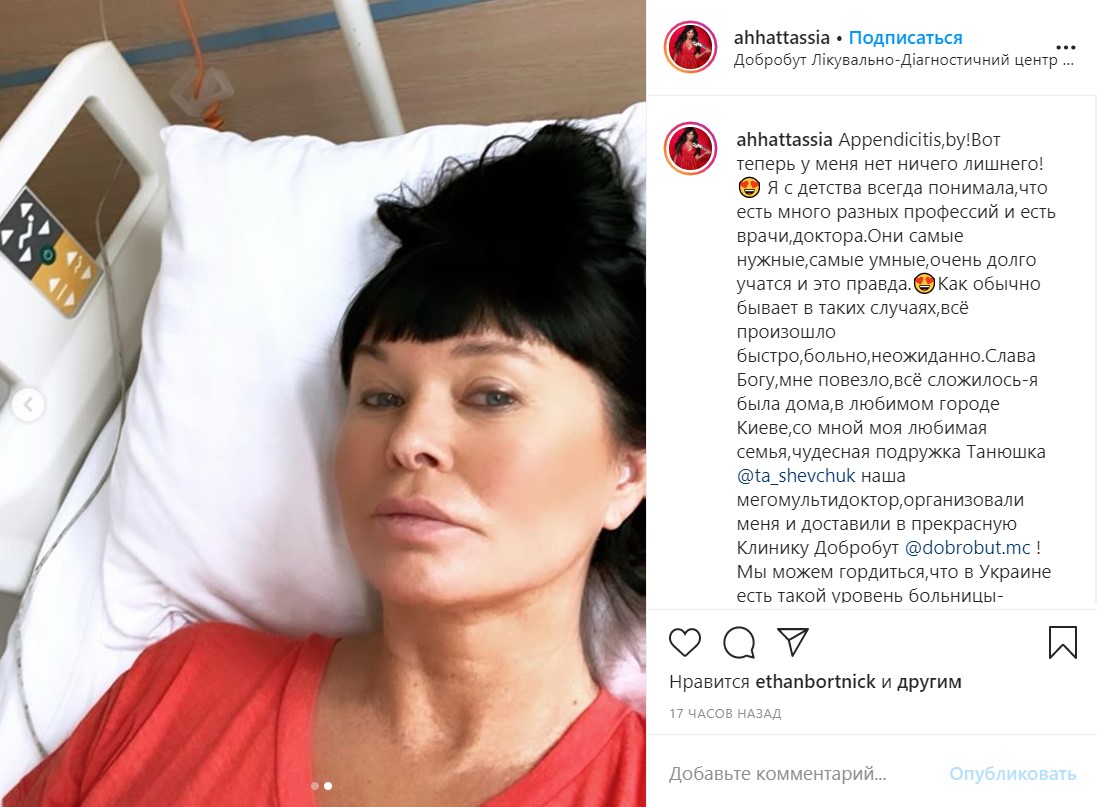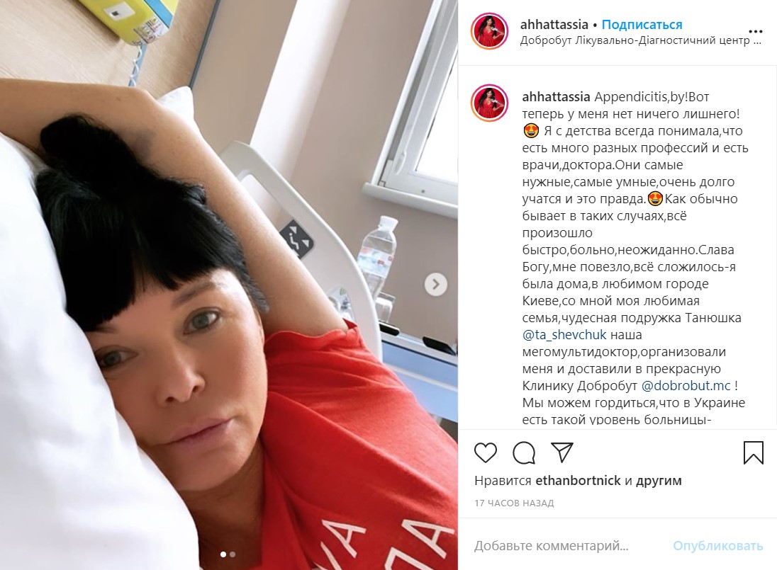 У своєму пості 54-річна Ахат також подякувала лікарям: "Дякую всім лікарям та медсестрам за вашу працю! Низький уклін всім медикам за вашу складну роботу!".
