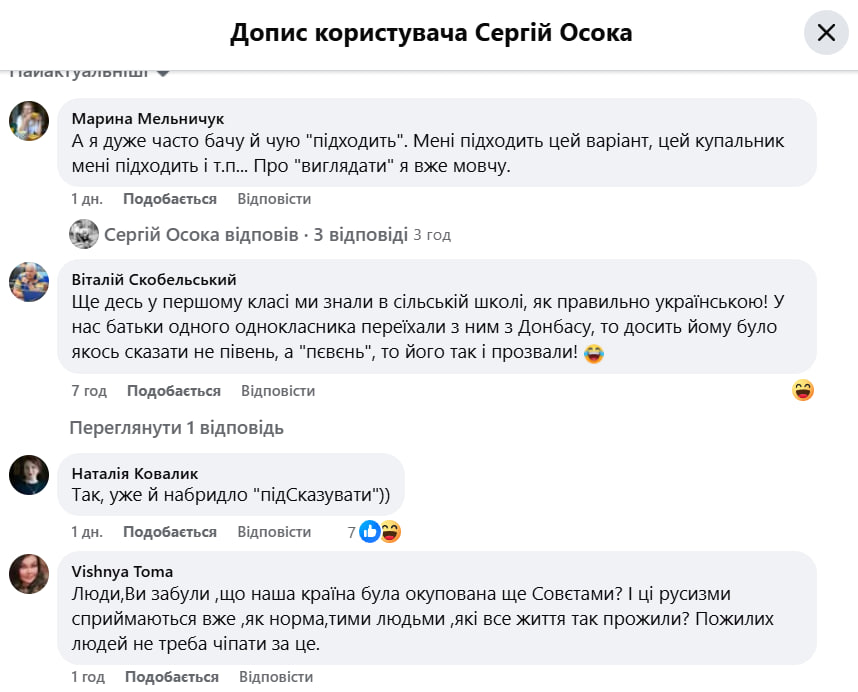 Водночас у коментарях українці почали наводити свої приклади слів, які їх обурюють. А дехто з підписників порадив не чіпати людей похилого віку за вживання неправильних слів.