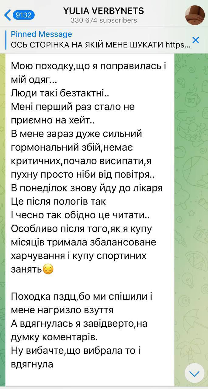 Також додав і скріншот, в якому Верба коментує хейт на свою адресу та пояснює, що має проблеми зі здоров'ям: