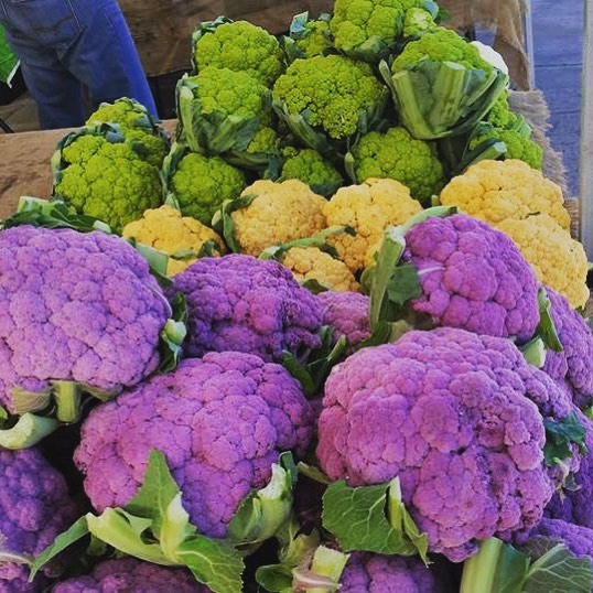 Різнокольорова цвітна капуста. Ця капуста є кольоровую в буквальному сенсі цього слова. Її не фарбують і нічим не обробляють, просто у цвітної капусти дійсно набагато більше природних відтінків, ніж ми звикли бачити на прилавках.