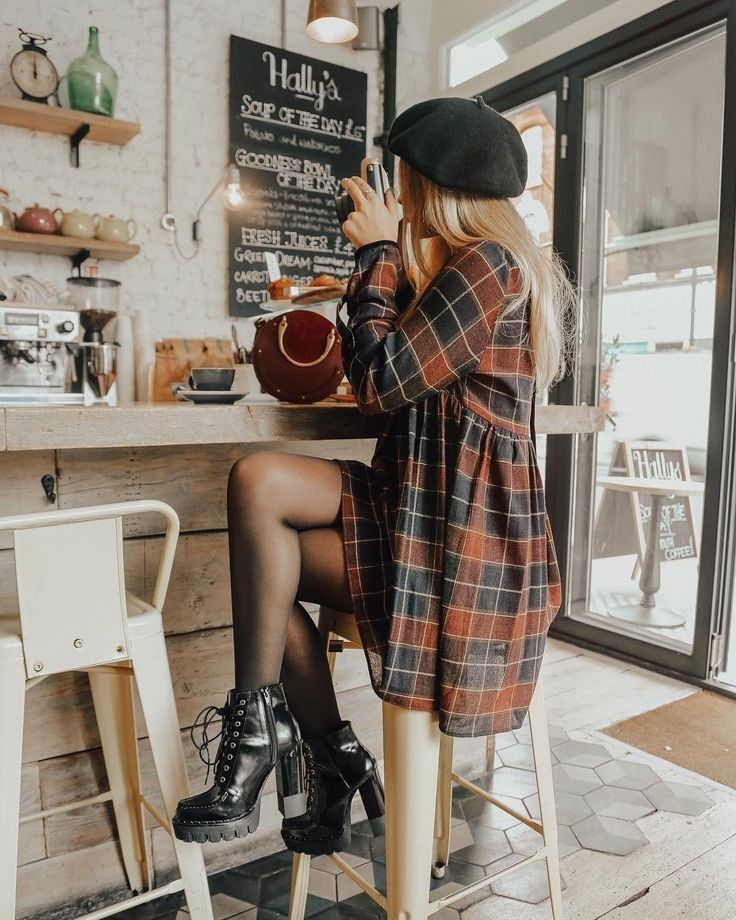 Дуже актуальними зараз стали картаті сукні-сорочки. Вони випали зі списку трендів на довгих 5 років, але зараз знову повернулися і готові підкорювати моду. Таку сукню можна носити з шапочкою або беретом, черевиками, шкіряною або джинсовою курточкою. Також добре виглядати будуть теплі гольфи до коліна.