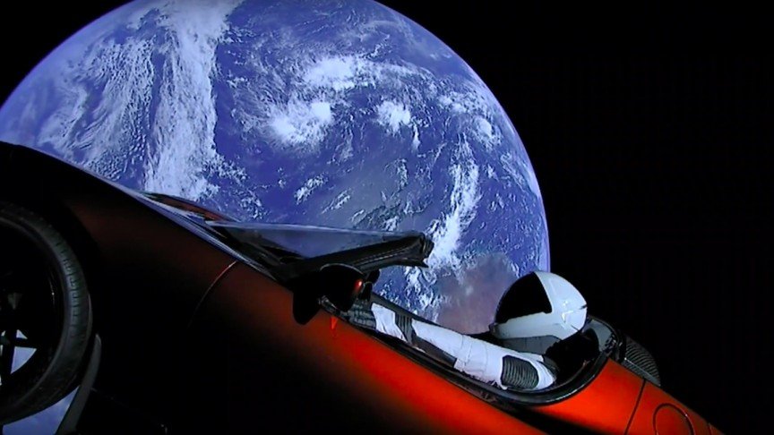 Автомобіль Tesla Roadster був запущений за допомогою ракети-носія Falcon Heavy. Електромобіль успішно вийшов на гіперболічну орбіту Землі, а потім відправився мандрувати далі по геліоцентричній орбіті.