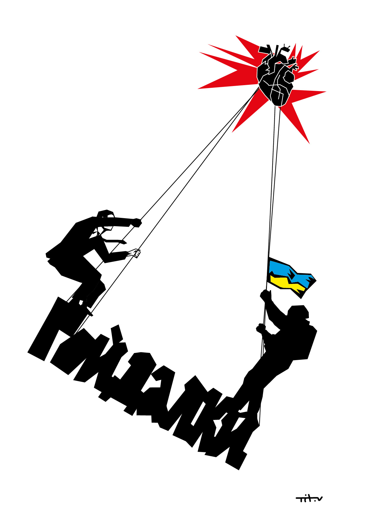 - Ні, не повертаюся до своїх плакатів у плані доробок, переробок, роботу залишаю такою, якою вона створена. Іноді вона недосконала, але чим більше я займаюся цією справою, тим більше напрацьовую професійність. Мова стала цікавішою візуально і технічно. Хоча в той же час вона доволі проста. Єдине, що бувають певні дати, про які пам"ятаю заздалегідь, тоді виконую роботу завчасно. Для мене це публічний щоденник, і я розмовляю такою мовою. Плюс у мене немає замовлень, я просто розмовляю сам з собою і знаходжу багато відгуків людей, які відчувають подібне. Бувають і незадоволення, і погрози. Але здебільшого це люди, які думають так само. Мої роботи знаходять відгук далеко за межами нашої країни.