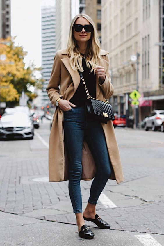 Одне з найпростіших модних рішень - це лофери з довгим пальто або пальто оверсайз. Доповнити образ допоможуть масивні аксесуари.