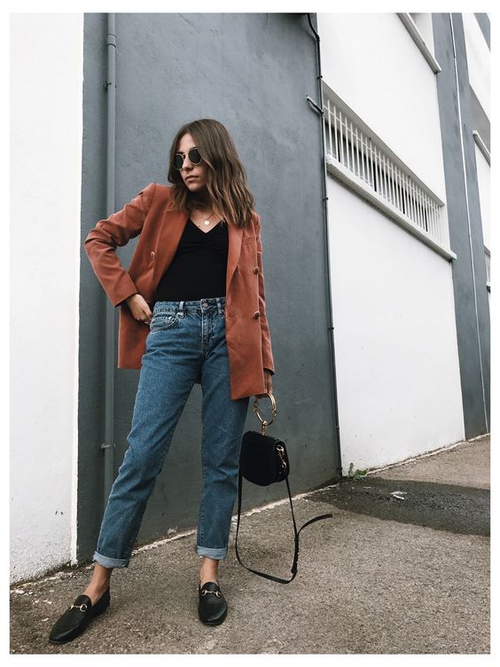 Піджак оверсайз та лофери допоможуть створити діловий стиль в одязі і не виглядати в офісі як "вчителька".