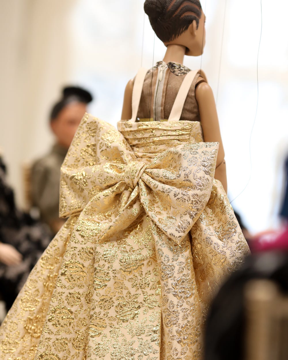 Щоб втілити свою задумку, Джеремі Скотт звернувся в компанію по створенню візуальних ефектів Creature Shop. Співробітники охоче працювали над створенням витончених маріонеток, висота яких становить 76 см. Ательє Moschino в Мілані створювало всі мініатюрні речі вручну.
