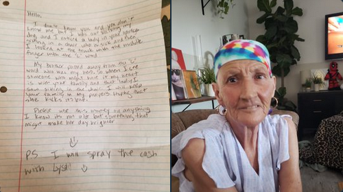 "Я не знаю вас, а ви не знаєте мене, але коли я гуляла з собакою, я помітила хвору даму на ганку, що сидить на стільці. Потім я глянула на вантажівку, на якій був середній палець і слово на "р" [до біса рак]", - говорилося в листі.