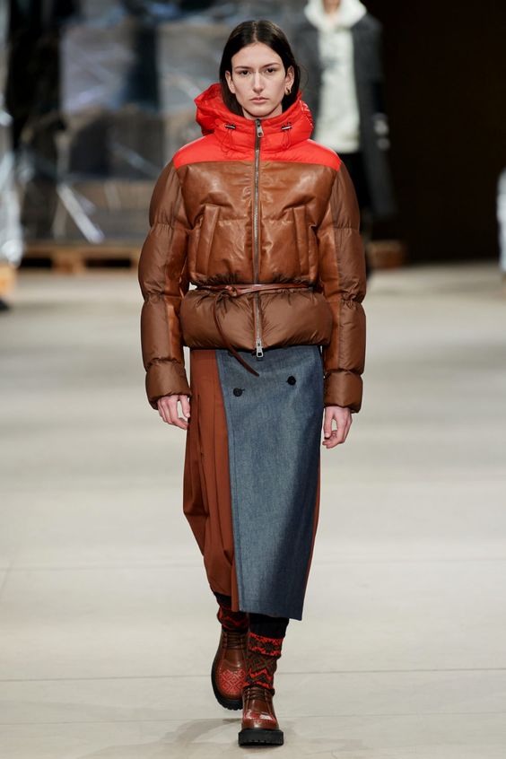 Також можна створити лук зі спідницею міді. Ви можете підкреслити лінію талії, надівши пояс поверх дутої куртки.