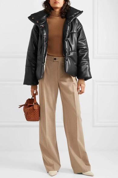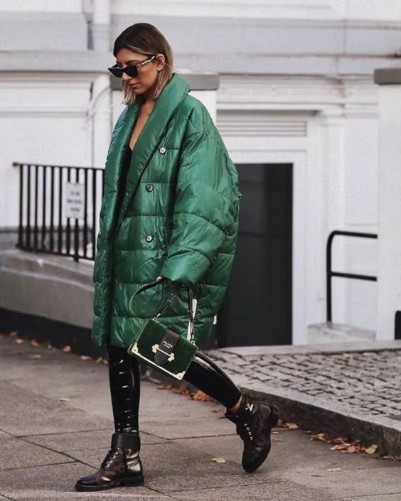 Також ви можете надіти легінси із еко-шкіри, грубі черевики, лаконічну водолазку і дуту куртку оверсайз.