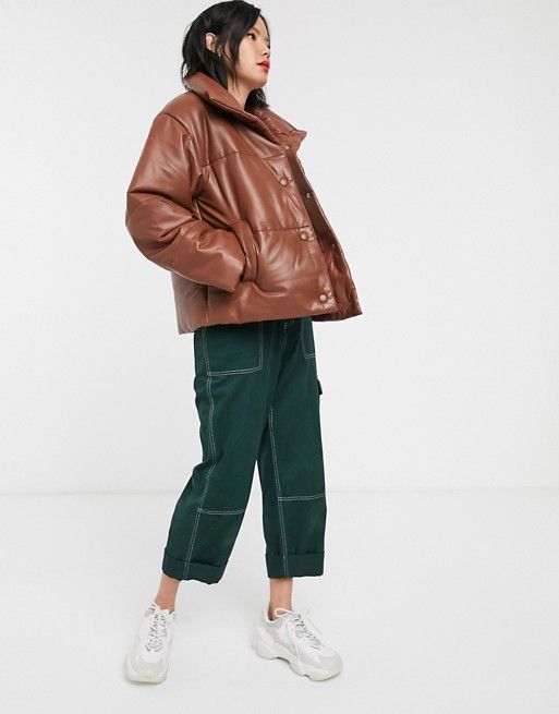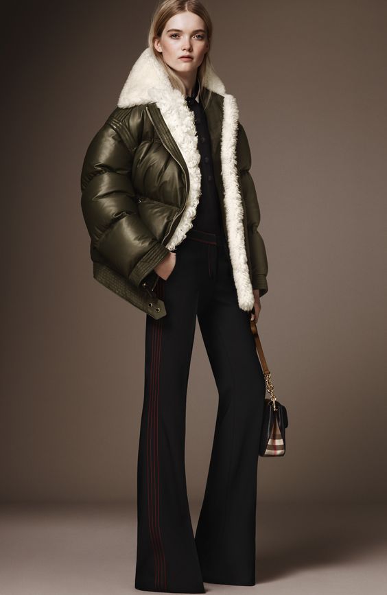 І навіть зі строгими штанами кльош така куртка буде виглядати стильно. Штани можна вибрати як під колір дутика, так і зіграти на контрасті. Головне - не переборщити з аксесуарами.