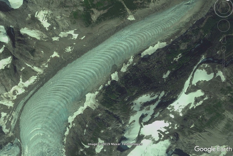 Льодовик, на якому через зміну пір року і танення льодів утворилися ось такі хвилі