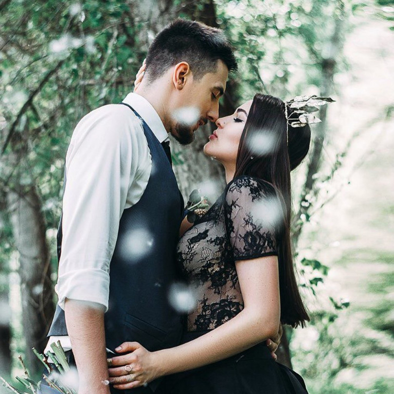 Вони познайомилися у стриптиз-клубі, де MARUV працювала вокалісткою. Через короткий час після знайомства закохані стали жити разом, пізніше пара тихо розписалася, не влаштовуючи пишне свято. Для цієї події співачка обрала сукню чорного кольору з гіпюром, а доповнив образ аксесуар для волосся у вигляді тернового вінка.