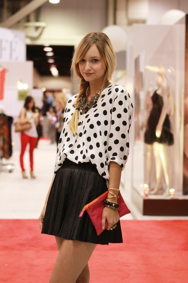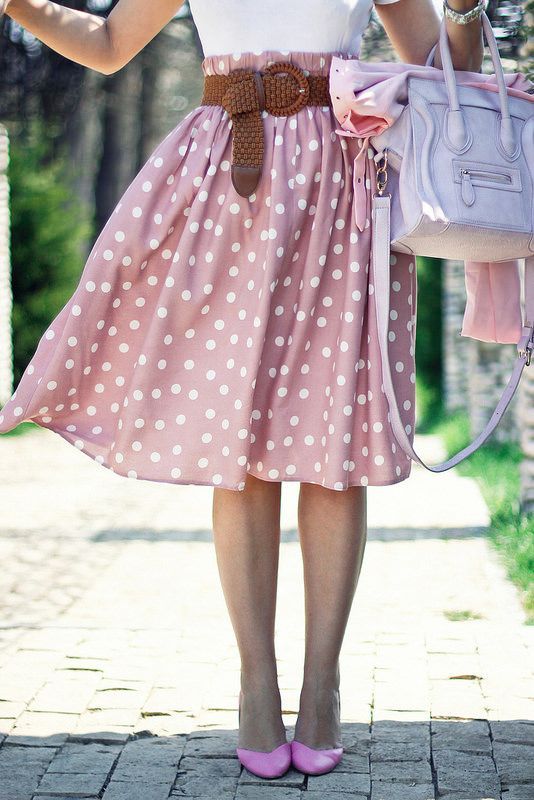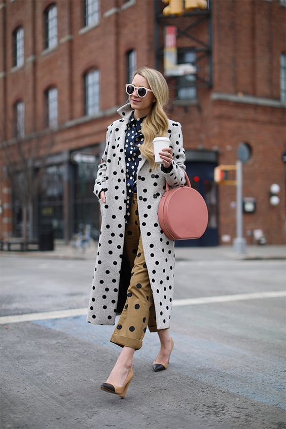 Для любительок яскравих образів хорошим варіантом може стати лук, в якому всі елементи містять візерунок в горошок. Таке вбрання буде виглядати дуже оригінально і незвично.