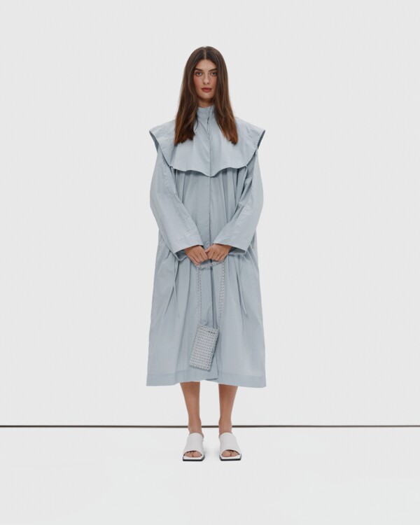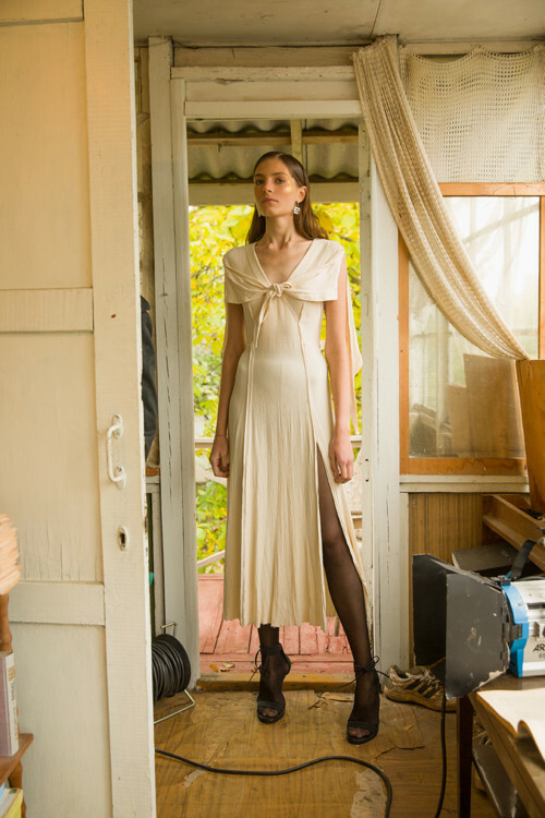 А ось бренд Katimo явно виділяється серед інших в цьому сезоні. Замість звичних відкритих літніх суконь дизайнер Катя Тимошенко вирішила представити наряди повітряного крою, що створюють об'ємний м'який силует. На думку дизайнера, ці сукні створені в настрої трохи сонного ранкового міста.