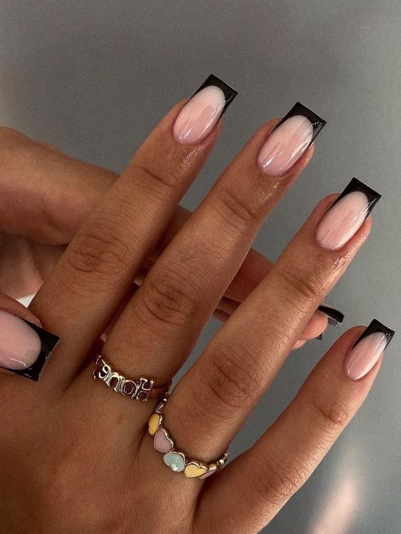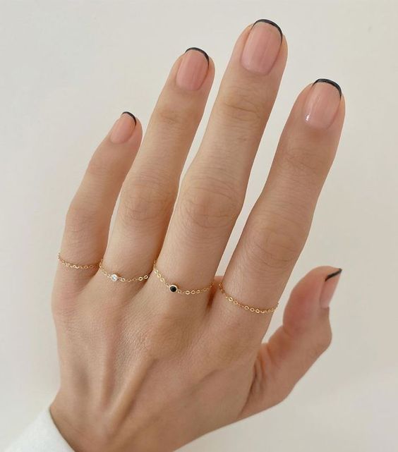 Чорний френч – це протилежність класичному, у ньому вільний край нігтя забарвлюють не білим, а насиченим чорним кольором.