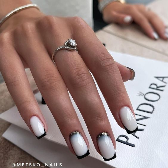 Також можна поекспериментувати та поєднати в одному манікюрі класичний френч та чорний.