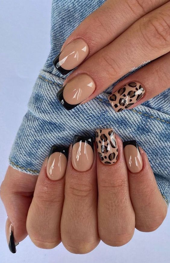 А тим модницям, які полюбляють вирізнятися з натовпу, радимо звернути увагу на оригінальне поєднання – чорний французький манікюр плюс леопардовий принт.