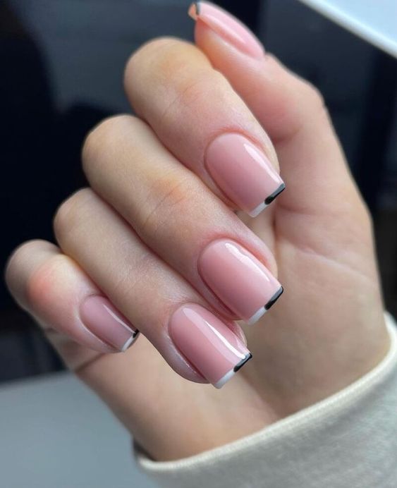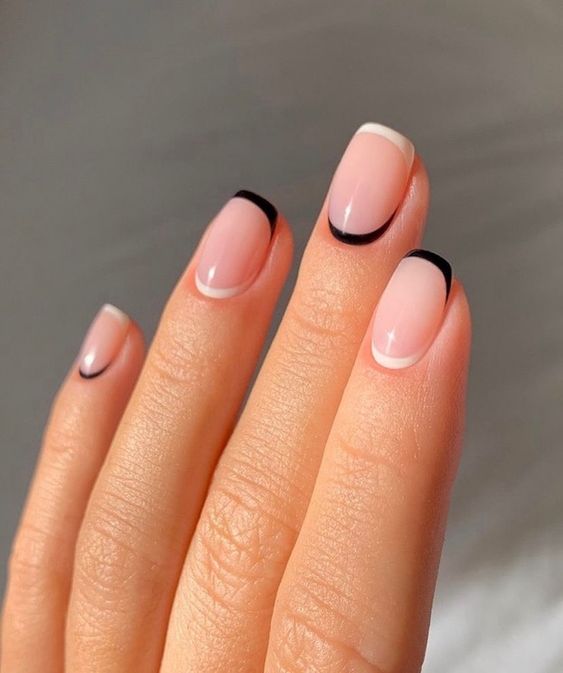 Якщо ви полюбляєте експериментувати з дизайнами, покрийте кінчик нігтя не одним кольором, а двома, наприклад, чорним та білим.