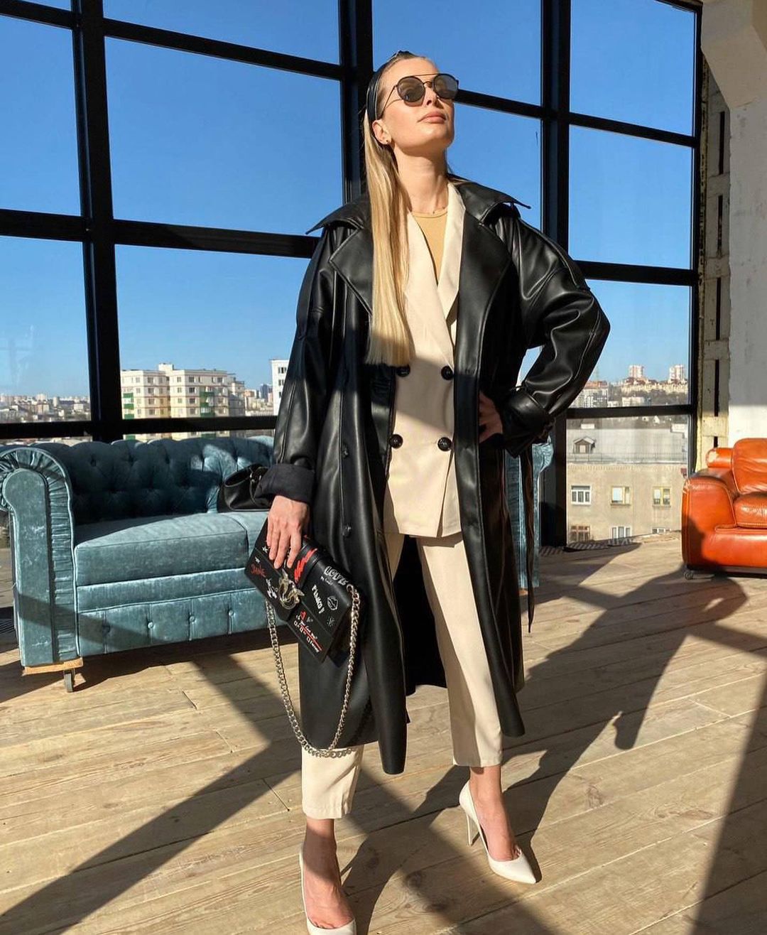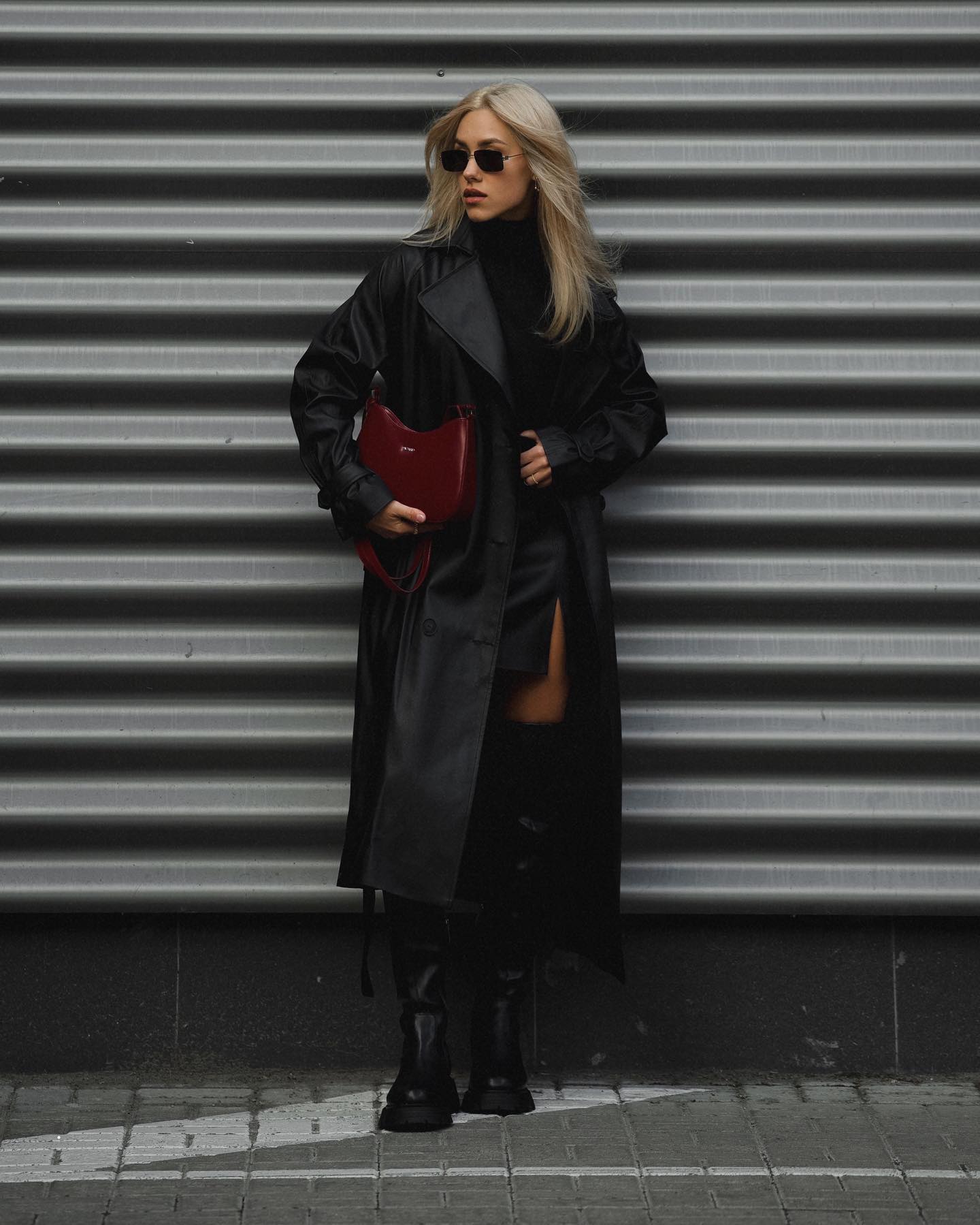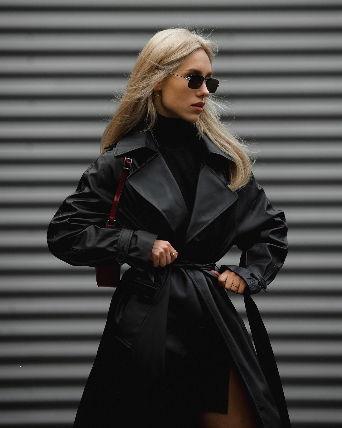 Як відомо, у новому сезоні дизайнери пропонують звернути увагу на шкіряне пальто у вигляді тренча. Це верхній одяг із прямим силуетом або злегка оверсайз, з поясом та довжиною до середини ікри.