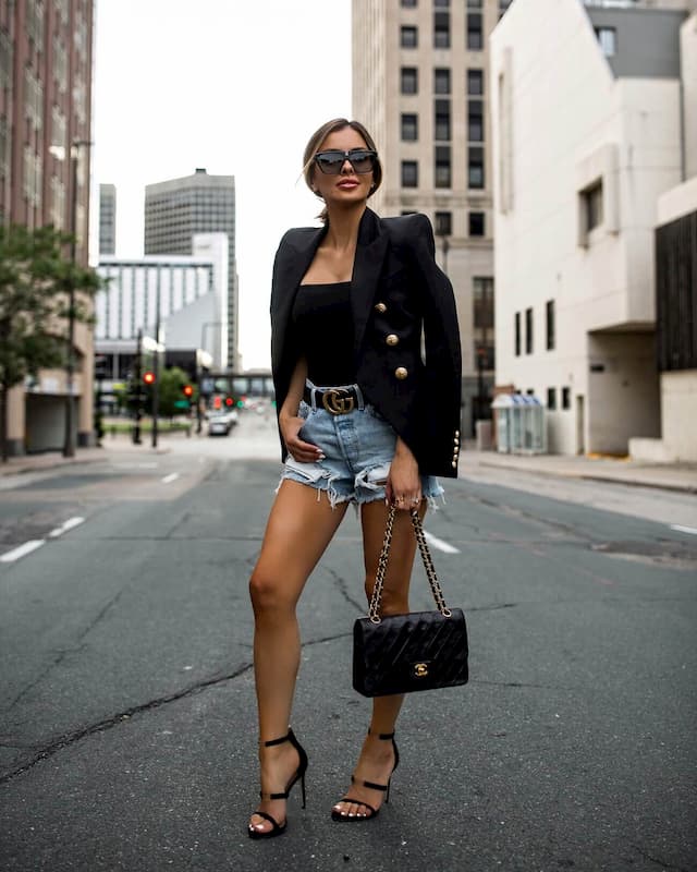 Якщо ви хочете надіти джинсові шорти з коротким топиком, стежте за тим, щоб шорти були високо посаджені. Це допоможе прикрити частину живота і збереже баланс елегантності, пристойності і сексуальності.