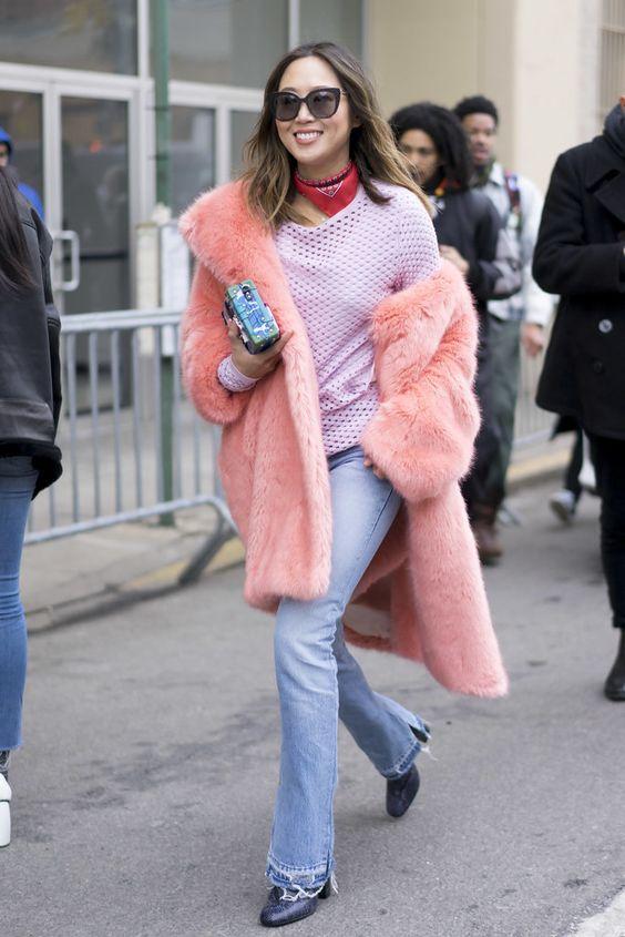 У цьому сезоні в моду прийшли пальто з незвичайних тканин. Їх можна носити в тому числі і з рваними джинсами і кросівками або сліпонами. Доповнити образ можна окулярами і незвичайними прикрасами.