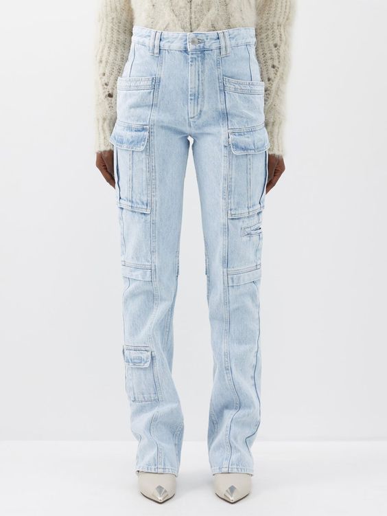 Джинси карго, як і брюки карго – це штани прямого крою, іноді можуть бути з резинкою внизу, з накладними об'ємними кишенями на стегнах і великою фурнітурою. Спочатку їх шили із щільної тканини кольору мілітарі, проте сьогодні можна зустріти карго в колекціях дизайнерів із льону, вовни, шовку та навіть деніму. Якщо раніше такі штани були робочою чи армійською уніформою, то зараз цей елемент перекочував до жіночого гардеробу, і носити їх можна навіть із високими підборами на світські заходи.