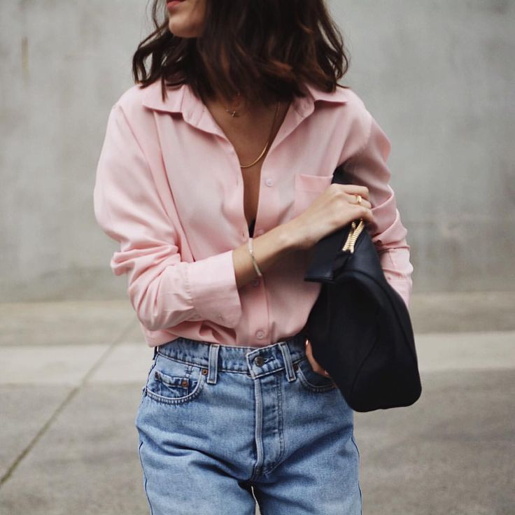 Також класичний лук можна розбавити аксесуарами. Джинси, сорочка і човники ідеально виглядають з групной сумкою золотими прикрасами. Сумка в такому вбранні може бути будь-якого кольору, тому не бійтеся експериментувати.