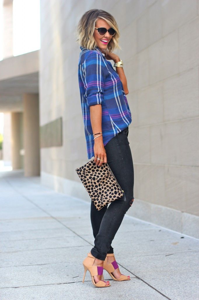 Дуже модними в цьому сезоні є картаті піджаки і тренчі. До класичного поєднанню білої сорочки і джинсових штанів можна додати такий елемент, трохи розбавити образ коричневими або чорними акцентами, і вийде справжній шедевр.