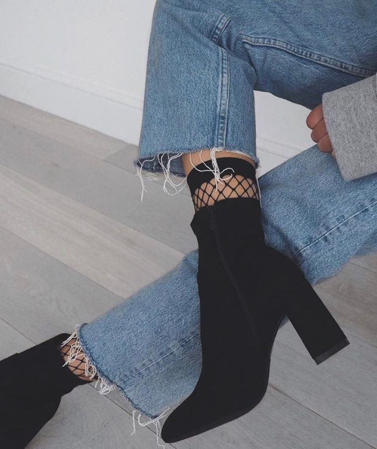 Модна фішка, яка повернулася до нас із трендів п'ятирічної давності - шкарпетки та колготи в сітку. Їх можна носити як доповнення до комбінації джинсових штанів і напівчобітків. Доповнити образ можна кроп-топом, світшотом або худі оверзайз, коротким светром або гольфом.